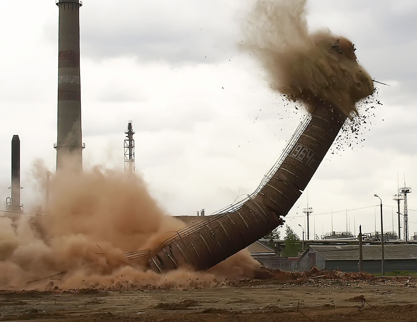 Разборка, демонтаж дымовых труб, при выводе их из производственного процесса, или демонтаж (снос) аварийных труб с последующим строительством новой дымовой трубы.